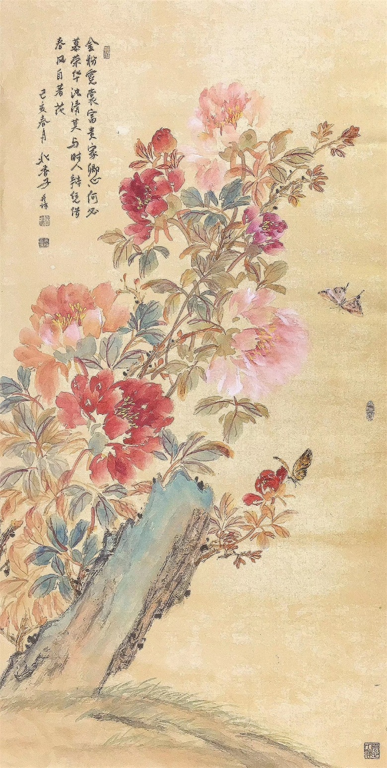 纵观北香子的艺术创作,毋庸讳言,笔墨中有很多古人的影子,但是,她的笔墨技法绝对不是一家一派的因循守旧、陈陈相因,而是,深研古人笔墨技法的融会贯通,可能是无心插柳,也可能是有意为之,她笔墨中有吴昌硕“以书入画”的行笔意图,但避开了霸悍恣肆之笔,而显得俊美隽永,她笔墨中有齐白石“红花墨叶”的构图,却没有挪用齐白石的一草一叶,而是发现了真实视觉的形态,把写生取景与意象之景结合,唤醒了现代大众共有的心智与情感的本能,所形成的艺术符号具有可操作的创造性,甚至在北香子《蝶恋花》的构图中,依稀看到北宋钱选的影子,但是北香子的《蝶恋花》充分运用透视、光影等现代笔墨语言增强了视觉的立体感,使画面更富有新时代的审美特征。