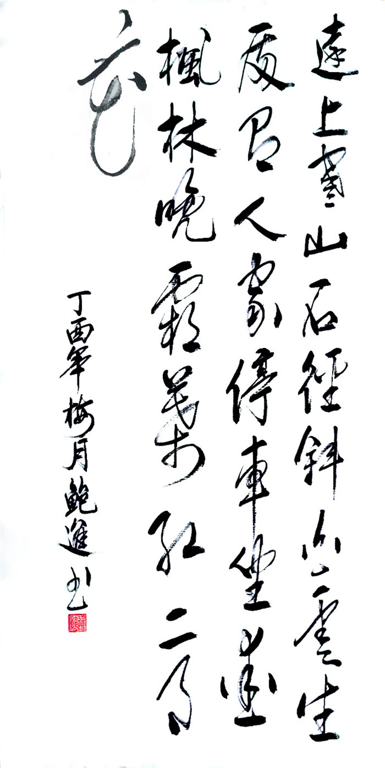 任何艺术都是艺术家通过一种外在形式诠释自我的内心关照,书法更是写心、养心的艺术,一幅质地洁美的书法,给观者带来视觉享受之时,一定让观者的心灵也能得到一种韵味悠远的滋养。当鲍进的书法映入眼底时,跌宕起伏的行草,工稳端庄的行楷,质朴雄强的篆隶,饱览使人入胜,细品让人回味。