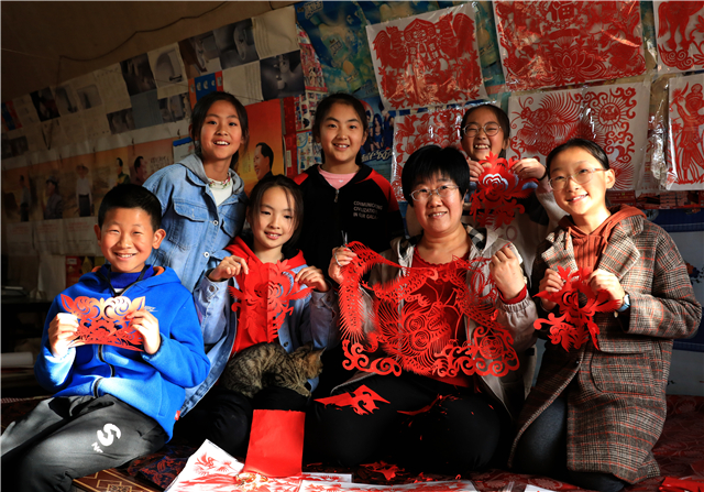 农家院里、土炕上、课堂上、田间地头……惠富君走到哪里剪到哪里、教到哪里,上至白发苍苍的老者,下至天真无邪的孩子,都是她的学生,不少学生的作品还在剪纸大赛中得奖。(图、文/李俊峰)