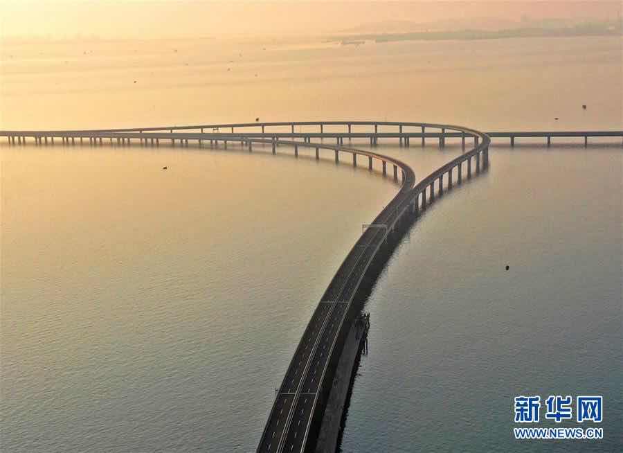 3月30日拍摄的青岛胶州湾大桥胶州连接线(无人机照片)。 新华社发(王昭脉 摄)