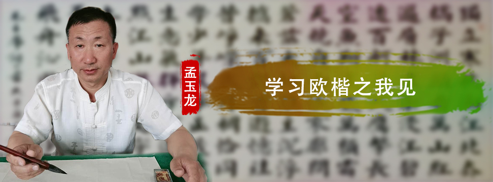 通过对欧楷和田楷的比较,使我高兴的是这十年没走弯路,欧楷虽然险绝劲俏,而流传下来的又都是碑帖,其笔法无从借鉴,而田楷毕竟是从欧楷而来,又有人教,又好入手,十年来从其笔法、结体、章法上均受益匪浅。最近三年来,对欧阳询的《九成宫醴泉铭》,《化度寺》以及姚孟起的《临九成宫》进行了多次临习,这期中得到王同宝老师及多位欧楷老师的指导,使我的书写水平有了很大的提高。为了把我的楷书写的更活一些,我现在正临习《孔子庙堂碑》,今后我打算临习二王的有关名帖,为更好的把欧楷写好,也为写出自己的艺术特色。