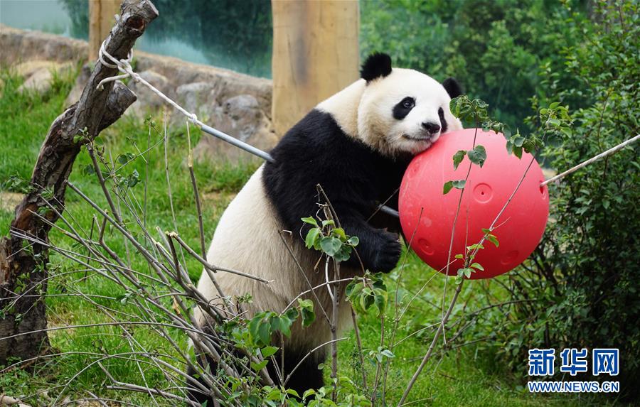 8月16日,大熊猫“奇果”在西宁熊猫馆内玩耍。 青海省西宁熊猫馆的四只大熊猫已经在西宁生活了一年多,在工作人员的悉心照顾下,已经适应了青藏高原的气候,身体各项指标正常。 新华社记者 耿辉凰 摄
