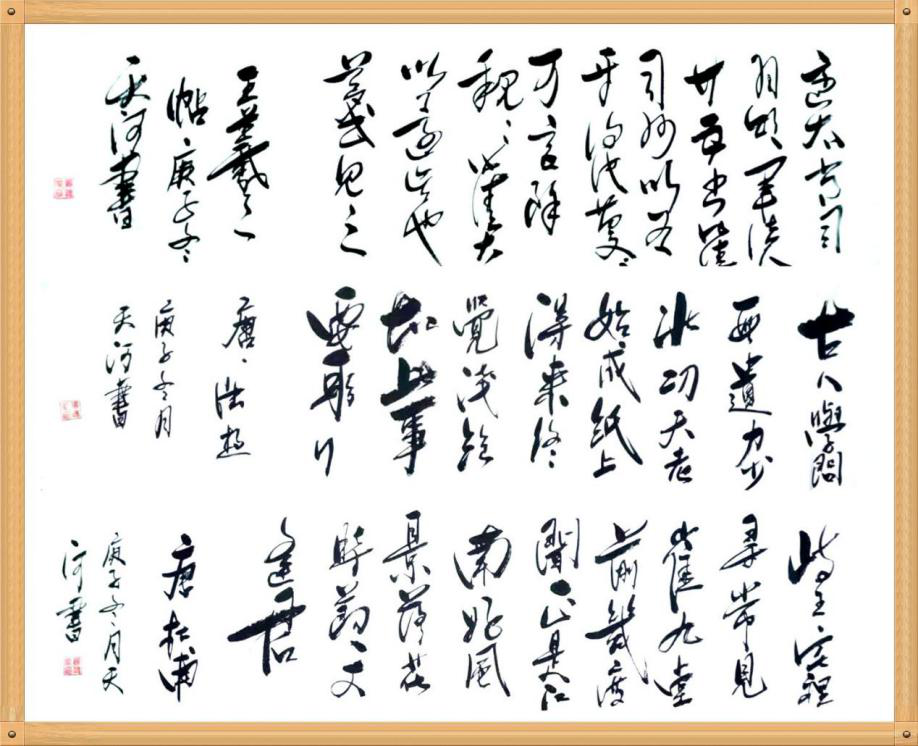 于是胥怀星便以地为纸,化土为墨,夙夜功勤,耕笔不辍,潜心研习历代大家宗匠极品以充能量。并一直坚持练习,尤其是近十年来,加倍刻苦练字,寒来暑往,每天不少于8小时写字,得到不少锻炼,胥怀星已然把练字当成生命的一部份。