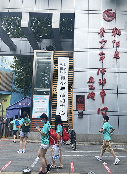 ▲朝阳区青少年活动中心,学生们三三两两前来参加活动。图/唐晓彤