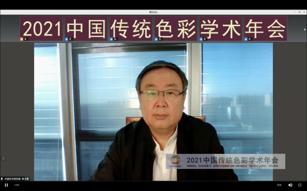 2021年11月12日上午,由中国艺术研究院美术研究所主办的“2021中国传统色彩学术年会”开幕。本次年会全程以线上直播的形式进行。开幕式创新线上会议形式,由中国艺术研究院院内领导出席的“会议空间”与院外领导嘉宾出席的“视频空间”组成。