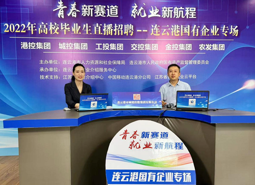 7月22日下午,“青春新赛道 就业新航城——连云港市国有企业专场”走进江苏省智慧就业云平台,连云港市国资委党委、连云港港口控股集团、连云港市城建控股集团、连云港市工业投资集团、连云港市交通控股集团、连云港市金融控股集团和连云港市农业发展集团分管负责人、人力资源部门负责人纷纷从“后台”走向“前台”,围绕企业紧缺急需的金融、经营管理等402个就业岗位进行“线上”宣介。短短3个小时,发放宣传燃信8万余条,吸引8万余人涌入直播间,收到求职简历2千余份。