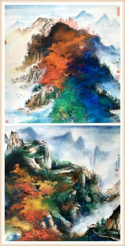 首先他依仗过去所学、所感、所想,开始着眼于中国传统笔墨。他顺着李可染上追黄宾虹、顺着齐白石取法吴昌硕,并取法乎上,探索墨分五彩的笔墨表达方式,然后,他把西方油画的色彩、日本唯美主义的用色方法,以及中国画的墨分五彩统统笼于笔下,进行情景合一的酝酿。与此同时,他在不自觉之间把中国画的具象与意象,把西方油画的写实与抽象结合起来,让具象、意象、写实、抽象在微妙的色彩中各得其真,各得其所,从而使他的泼彩世界晓烟交碧,晨光欲动,骄阳初蒸,崇山如翠。画面之中,具象、意象、写实、抽象,乍合乍离,或聚或散,物态欣愉,神妙如动,既有着中国传统文化与中国山水审美的品位,又有着西方表现主义的浪漫情怀、印象主义的丰富和谐;既带着浓郁的传统文化熏染出来的意境、空间与趣味,又有着向现代审美形态发展的前瞻性。呈现出雄阔、壮美、浑厚、博大、精深的艺术境界,彰显着胸次、学养、才情、功力各臻其妙的艺术状态。