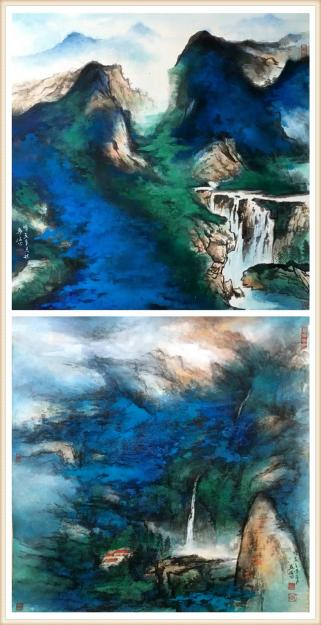 俞关佑的泼彩是传统绘画的拓展,也是对张大千艺术的完善。当俞关佑把传统笔墨的墨分五彩延展为五彩缤纷的世界时,当他立足于张大千而进行更加深入的探索时,他的泼彩就不仅仅停留在传统的“品”,或者张大千“观”的范畴,更多的则是心绪遐想中的 “游”和“居”。纵览俞关佑的泼彩,可以感受到,他追求的远观、旷达,追求的精微、细致,同时,也在追求感受、体验,换言之,俞关佑在追求艺术的整体性之时,又锲而不舍地去关照当代人的审美情趣。由于,当代大众受快节奏生活的影响,疲惫、焦虑始终挥之不去,大众精神上需要精致的“品”、旷达的“观”,然而,潜意识里一直在渴望“游”,期待身心自由的“居”,因为,游能心旷神怡,居能神有所归。俞关佑似若无意,然而,他的泼彩却恰恰触及了当代大众内心深处最敏感的区域。瞩目俞关佑的泼彩,千里之远尽出奇,万里山水得其妙,静静地待他的作品前,目光随着色彩的变幻而关照内心,心境则随着意境之妙而悠闲至极,仿佛身居世外桃源之中,又仿佛孤舟飘于茫茫湖水之间,心泯于超脱,情化于澄澈,流连、抒怀、神游、发呆,目之所及,心神澄澈,物我两忘。置身其间,飘逸的遐想油然而生,在妙境中养心,恬淡中悟道。岂是“品”、“观”可以悟得真味?又岂是“游”、“居”可以说得明白?