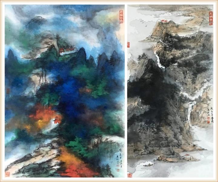 纵览俞关佑的泼彩,可以发现,俞关佑善于以精微之笔刻画具象,以豪放之笔渲染意象,精细处,一丝不苟而活泼灵动,豪放处,尽情敷色而高旷辽阔,同时,他也善于通过微妙的笔触进行具象与意象之间的过渡,笔道中含着阴阳,色彩中藏着虚实,让具象与意象交相辉映,从而使眼中之景与心中之境神遇而迹化,构建成宇宙八荒、万象阴霾尽收眼底的视觉力量,给人一种“定是人为,而浑然天成”的艺术境界。这种境界的表达不再是张大千晚年变法之后,受身体的影响,或受造型、光影、透视欠缺的影响,而给人一种都好、都美,却总有一点不尽兴的阻塞感,俞关佑更不是传统意义上的文人山水的样式,而是一种更能驾驭微妙,更能表达情感的状态,放得开、收得住,很有现代风、很有时代感,体现出新时代的新气象,契合了当代大众的审美感受。当然,笔者不是说俞关佑一定比张大千高明,然而,俞关佑确确实实在张大千的基础上往前迈了一步。