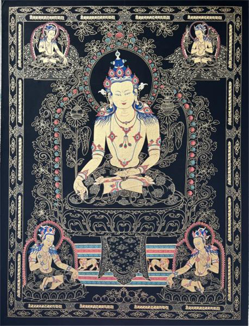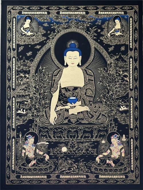 唐卡系藏文音译,指用彩缎装裱后悬挂供奉的宗教卷轴画,是藏族文化中一种独具特色的绘画艺术形式,其题材内容包含藏族的历史、文化和社会生活等诸多领域,堪称“藏民族的百科全书”。唐卡的绘画过程工序繁多,一幅唐卡往往需要几个月,甚至几年的时间才能完成。
