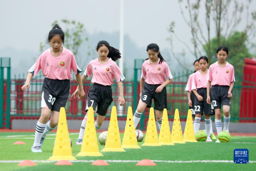 近几年,四川省华蓥市校园女子足球运动快速发展,当地有34所中小学校成立了女子足球队。孩子们在学校参与足球训练,增强体质,享受足球带来的快乐。