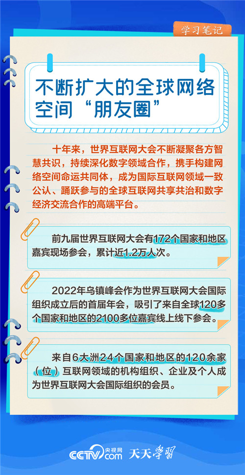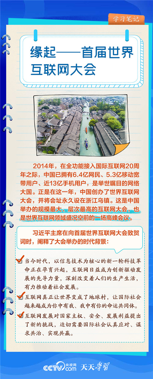 前九届世界互联网大会,习近平主席或亲临现场发表主旨演讲,或视频致辞,或向大会发来贺信,以不同形式关心大会举办。央视网《天天学习》栏目推出学习笔记,与您一起了解世界互联网大会的十年“网”事。