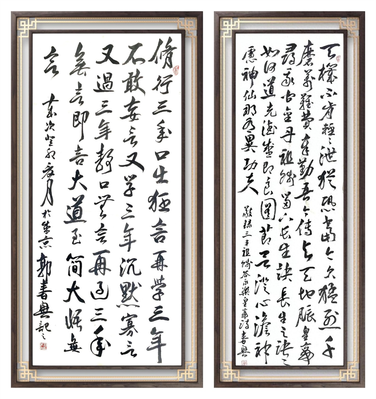 郭春兴的魏楷书端庄浑厚、遒劲有力,大气磅礴。其书法既有传统书法的精气神,又有独到的个性,是共性和个性的有机结合,达到了一种完美统一,他说“不争第一,只做唯一”。其笔下的隶书古朴优雅,苍劲有力,而篆书雄浑苍劲,线条老辣,更为惊艳的是他的行草书,飞动不失平稳,整合了王羲之、张旭、怀素等大家的优势,得到了融会贯通,灵活应用,写出了一种新高度。