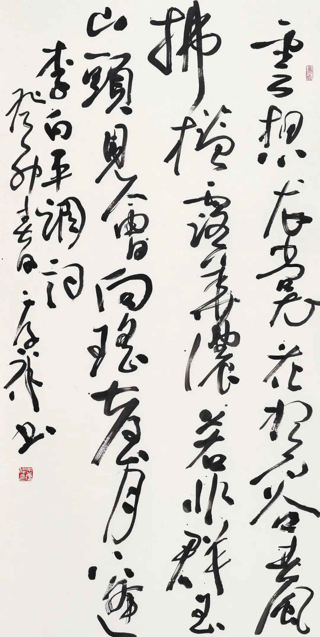 这些年厚祥在驾驭大作品的创作上非常娴熟。我曾不止一次看到他当场书写,并不是一挥而就,而是在不断地起卧腾挪,感觉字与字之间互为犄角,行笔在快与慢之间,时有妙契精彩之处,令人赞叹。当下,畅快的书写已很难得,而能变阴阳于空白,写情愫如草篆,王厚祥矣!