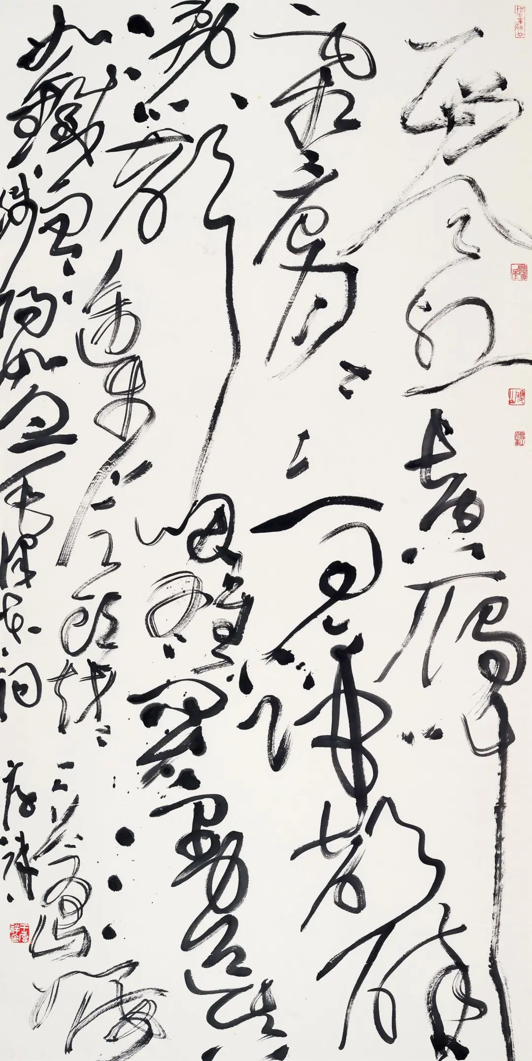 清末刘熙载《书概》说:“草书尤重笔力,盖草势尚险,凡物险者易颠,非具有大力,奚以固之。”此真方家之语也!王厚祥经过多少年的锤炼,写过了多少的纸张,积淀了内心到身躯与臂间的“大力”,才能写出这样一件惊世骇俗之作。