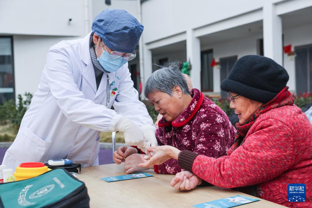 12月26日,巡诊医生在绍兴市越城区塔山街道社区卫生服务中心给老人进行血糖监测。