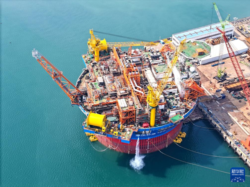 当日,由我国自主设计建造的亚洲首艘圆筒型“海上油气加工厂”——“海洋石油122”浮式生产储卸油装置(FPSO),在海油工程青岛场地进行海上倾斜试验及调试,为项目年内投产奠定基础。
