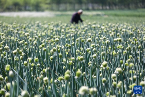 4月24日,农民在山东省淄博市高青县黑里寨镇一处菜田里劳作。