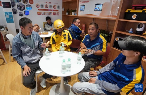 6月16日,在望京商业区工作的外卖配送员、快递员在工会驿站内休息。