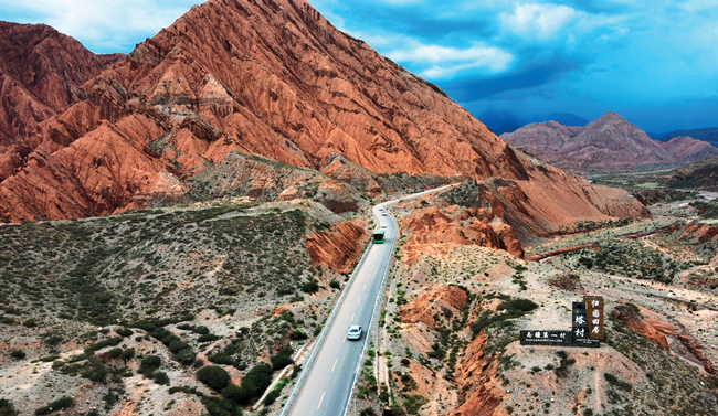 ▲新疆阿克苏地区温宿县G314线K969+660岔口—塔格拉克牧场公路,使“荒漠绿洲”塔格拉克村旅游热度大增。