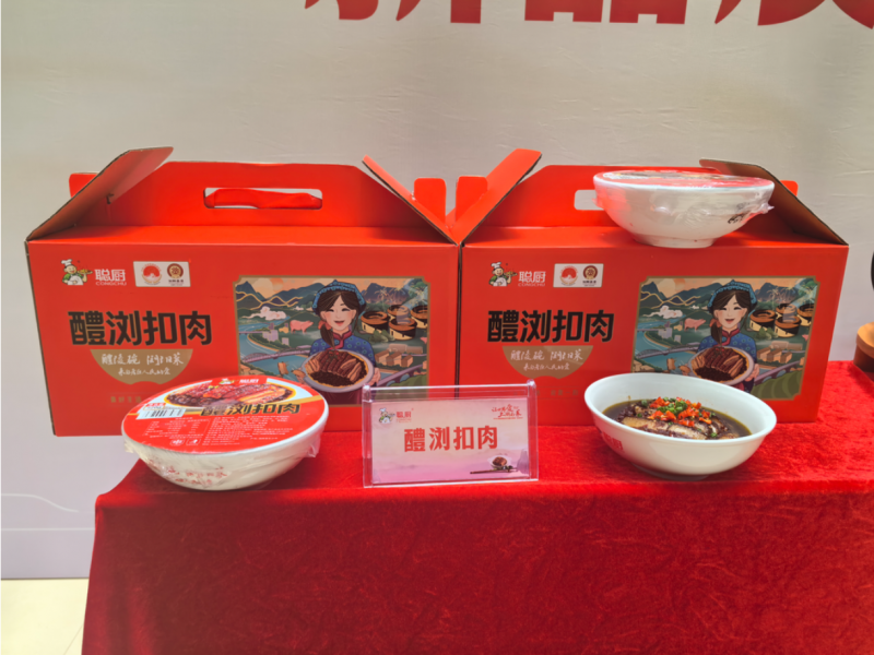7月10日,湘菜预制菜头部企业新聪厨携手享誉全球的醴陵瓷器推出湘菜新品“醴浏扣肉”,用醴陵碗盛浏阳菜,精心烹饪湘菜爆品,推动湘菜出海出圈。