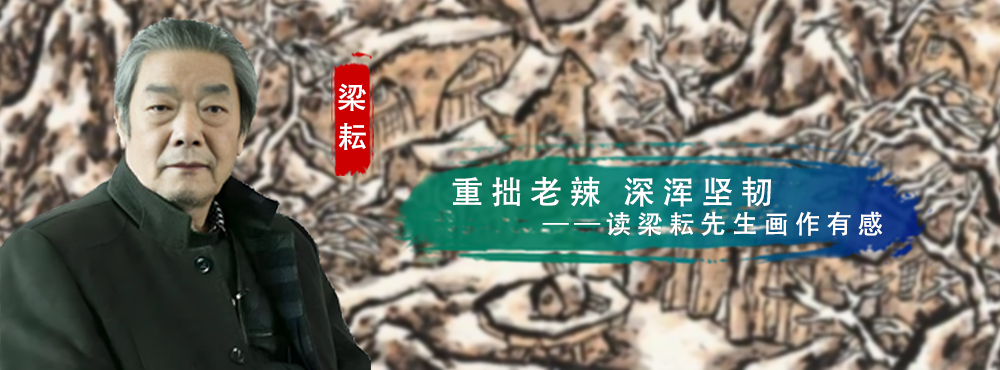 去年十一月份,因参加梁耘先生在荣宝斋的个展研讨会,得缘与先生相识。半年多来,陆续与先生通过微信交流互动,对先生的为人为艺了解渐多,敬佩之余,亦生感慨。人之于世,终有成者,莫不对所爱之事潜心定念,持之以恒。苏轼《晁错论》中说:“古之立大事者,不惟有超世之才,亦必有坚忍不拔之志。”对于个体艺术实践者而言,这坚忍不拔之志就是引领其敢于面对一切困难努力前行的理想与灯塔。现实境遇多半并不如意,但人在心中总要开出一线希望,否则生活将如何继续?梁耘先生说:“我是从铜川的石头缝里拱出来的,孤寂,艰难!”语意看似平淡,细味其中的曲折与波澜,却不免令人心动。先生早年于西安美院毕业后,回到家乡铜川,一去基层二十五载,工作辗转变动,所不变者,唯一心向艺。终在逾天命之年始入西安高校任教,恐怕要到这时,他才真能安于艺事。先生二十五年沉潜铜川北山,“北山高,南山高,北山高不过南山腰!”北山贫瘠荒寒、环境恶劣,但北山养育了他。幼年的苦境铸就了他沉默而倔强的性格,借助北山之古木荒岩,他要展现生活种种境遇下自己对理想坚毅顽强地持守。先生托物言志,意欲脉接范宽,画笔遂凝“北山”。
