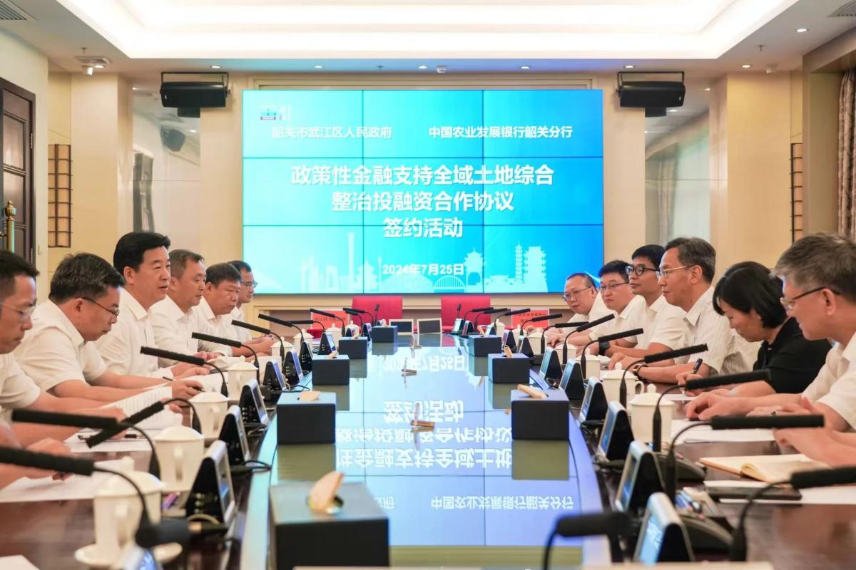 陈少荣对农发行一直以来关心支持韶关经济社会发展表达了诚挚的谢意。他介绍,韶关是广东的北部生态发展区、农业大市和重要粮食产区,当前正大力推进绿美韶关生态建设,着力发展林下经济、森林康养等产业;大力推进高标准农田建设,加强粮食和重要农产品稳产保供。希望与农发行继续深化沟通合作,在“百千万工程”、绿美韶关生态建设、全域土地综合整治等重点领域,为韶关提供更为优质的政策性金融服务。