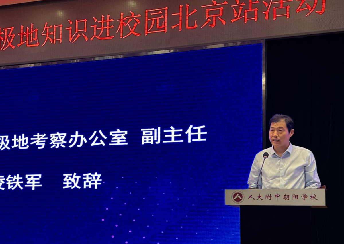9月13日,中国极地考察40周年极地知识进校园北京站活动走进中国人民大学附属中学朝阳学校(简称人大附中朝阳学校)。该活动以“认识、保护、利用极地——探索自然奥秘、勇攀科学高峰”为主题,由国家海洋局极地考察办公室牵头组织,自然资源部宣传教育中心、中国极地研究中心、中国海洋发展基金会、北京市自然资源和规划委员会等单位共同举办。