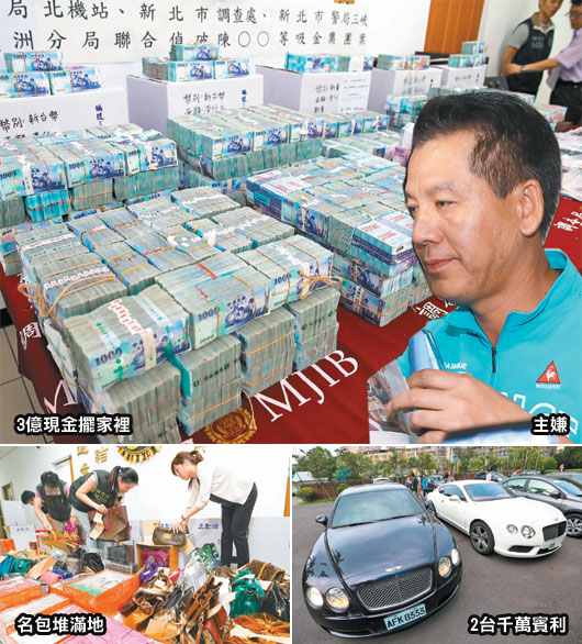 调查局北机站昨天搜索四豪宅,查获21个装台币与外币共3亿8千万元、3条金块的行李箱,其中帐房林致宇住处就堆了2亿9千多万元。检调同时查扣曹晏甄代步的宾利车、陈靖腾和曹父各自代步的宾士车及曹女的爱马仕、LV等上百件名牌包;由于宾利跑车太过高级,办案人员不敢乱开,最后请女警押车,由曹女开到北机站。