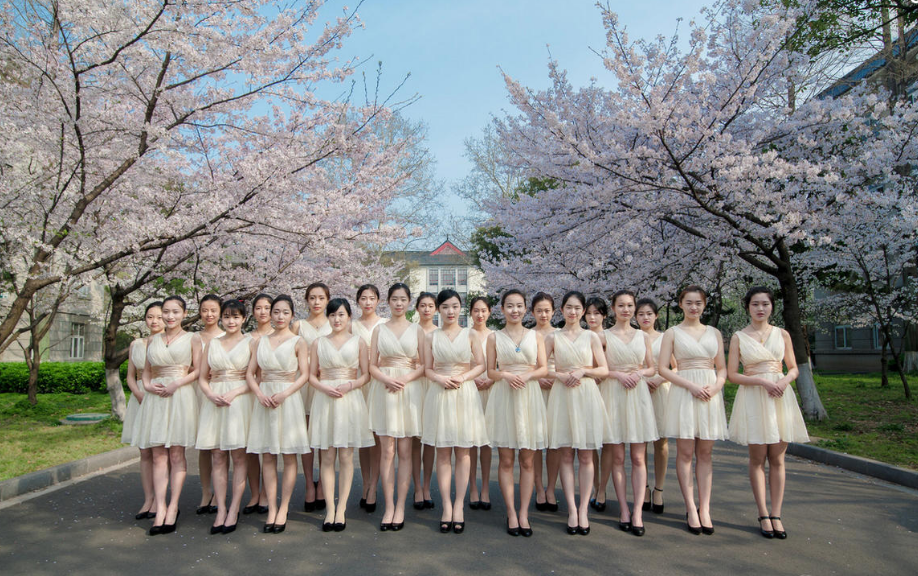 近日,南京林业大学礼仪队的一组照片在网上蹿红。照片中南林礼仪队的姑娘们齐齐穿着无袖及膝裙,走在学校樱花树下,画面养眼。上传这组照片的是人人网友刘梁晖。照片中的姑娘们已经提前开启了“盛夏模式”,换上了无袖连衣裙。老图书馆门前的樱花大道上,礼仪队的女生们站成了整齐的两排,穿着纯白的连衣裙,在樱花的映衬下显得分外娇艳。