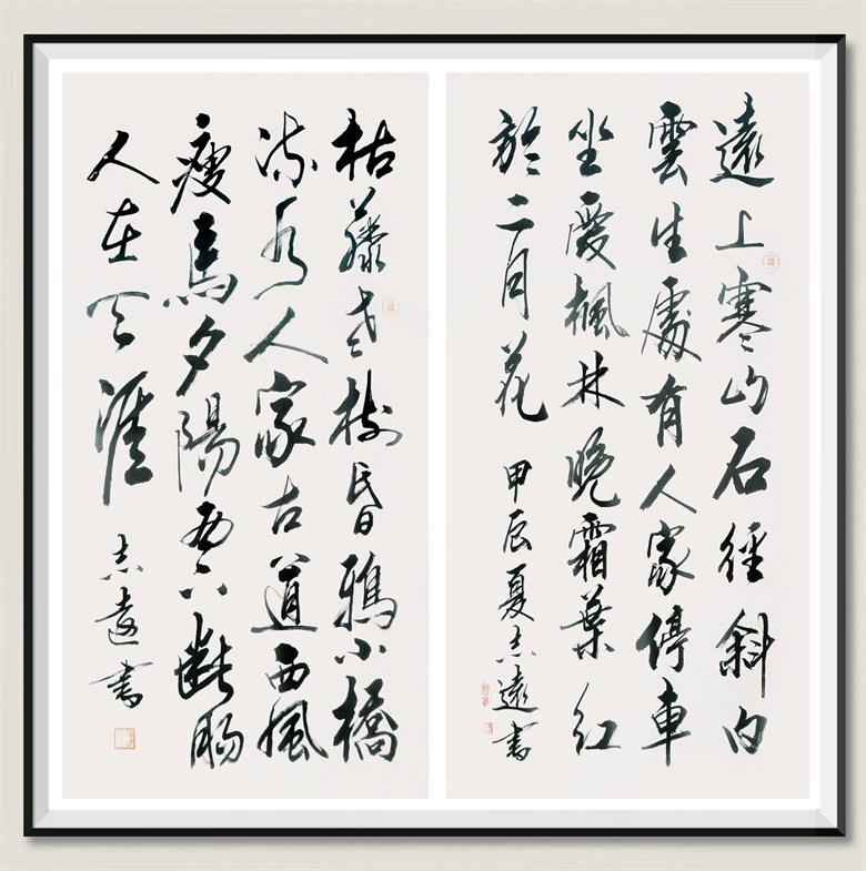潘志远书法作品《天净沙·秋思》马致远 《山行》杜牧