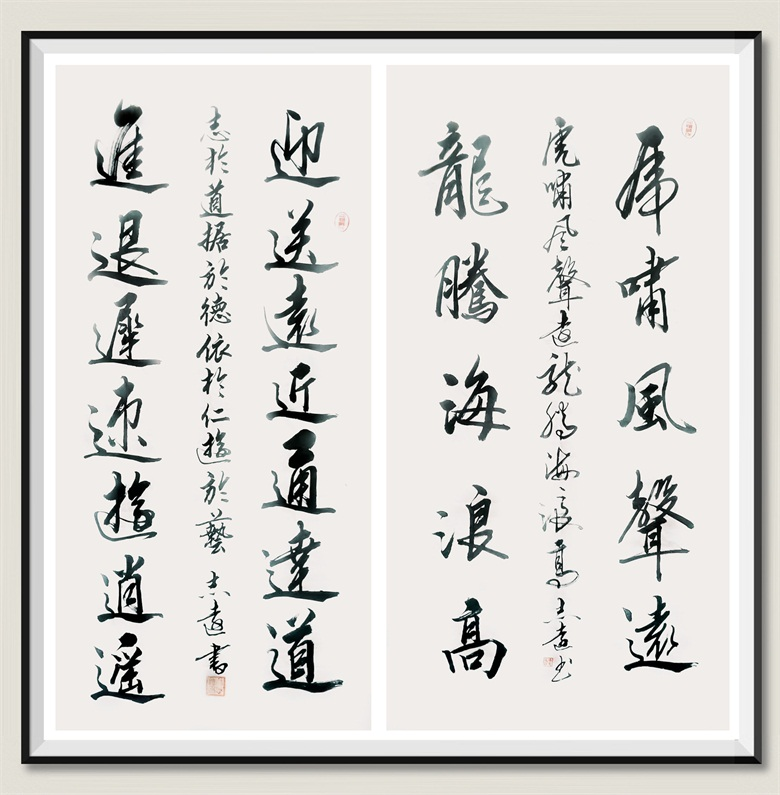 潘志远书法作品《迊送远近通达道 进退迟速游逍遥》 《虎啸风声远 龙腾海浪高》