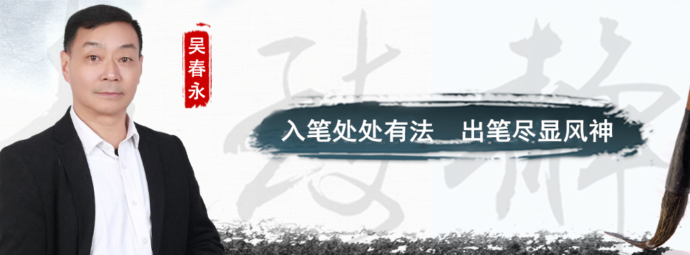 多年以前,吴春永就以最大的功力打进了传统,直至今天,他依然在传统之中使劲,他已经做到了“精专久长”,有着深厚的书写功力,但是,他又竭力从传统之中挣脱出来,进入了“我写我心,我入我意”的自由状态。正因如此,才体现出他的妙用之才情。比如面对字帖时,他揣摩古人之法,神会古人之情,取其精华,去其糟粕,捕捉与自己心性吻合的元素;比如临帖时,他可以入笔写传统,也可以出笔写心性,但是,他始终以“传统中有我”的方式淬炼笔法,又以“我中有传统”的意趣不离传统,而最为突出的妙用之才情则体现于超强的学习能力,吴春永对书法艺术极其敏感,他善于发现美的元素,并结合自己的特点把美的元素反复锤炼,融入自己的书写习惯之中,保存下来,比如在看帖、读帖时,他酌论点画,从中捕捉游离的艺术胎息,借为己用;比如走在马路上,看到广告标语,他离批优劣,从中鉴别美丑,吸收优长;再比如闲暇时光,他刷抖音、快手、视频号时,看到书法的能人异士,他也不排斥、不抵触,而是以包容之心去借鉴、去分析,从中参悟为我所用的书法元素。长此以往,吴春永深入了传统,又结合了时代,还出了自己之妙意,写出了风神,写出了美韵,成就了自己。