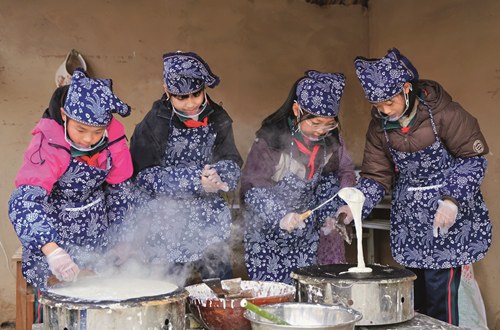 烙煎饼、推石磨、送军粮……12月2日,在临沂市河东区华东野战军纪念馆,参加红色研学实践的军部街小学学生做得有模有样、一丝不苟。