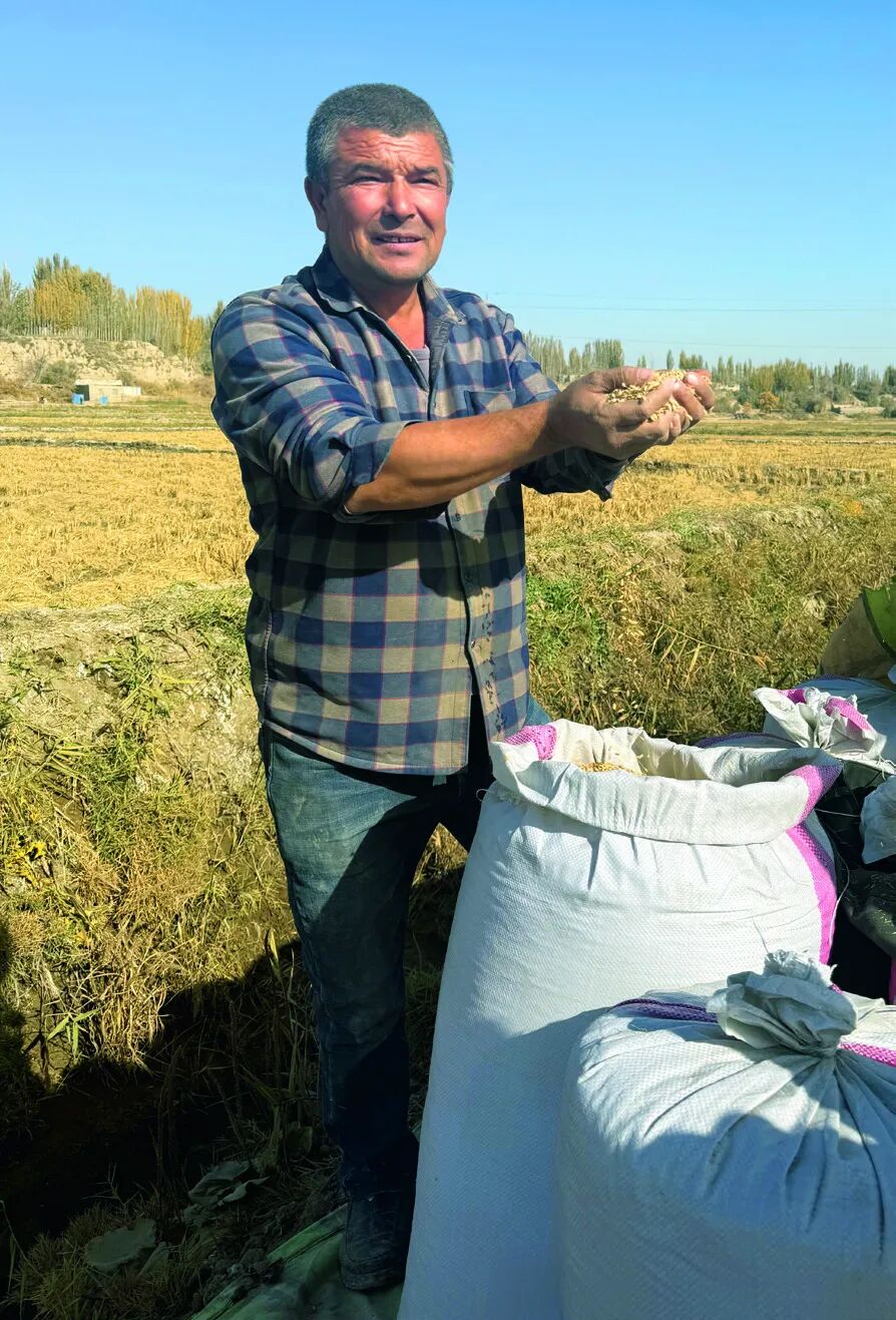 “今年增产了!这是天津来的种子,给我们的礼物。”一位维吾尔族老农蹲在田埂上,脸上绽放着笑容。