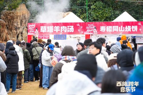 音乐节现场精心打造的非遗体验区、文创市集与美食街区,成为了跨年夜最具烟火气的文化坐标。草塔抖狮、西路乱弹等国家级非遗表演在冬日暖阳的映照下更显灵动,表演者们腾挪跳跃,将传统民俗的生命力与跨年的喜庆氛围完美契合,引得观众纷纷驻足喝彩;同山烧饼的焦香、草塔羊肉汤的鲜香弥漫在市集间,摊主们忙得热火朝天,“跨年夜的生意比平时翻了几番,备足的食材早早售罄”,寿稷同山烧饼摊主陈玲玲笑着说道。来自杭州的乐迷小吴坦言:“本来是为了喜欢的乐队来跨年,没想到被诸暨的美食和非遗圈粉了,这趟跨年之旅太值了!”