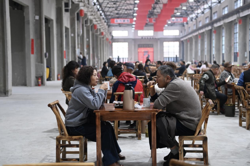春日里,绿草茵茵铺满铁轨间隙,复古站牌与现代景观各有韵味;由绿皮车厢改造的文创空间里,市民围坐四方桌,饮茶闲谈,其乐融融,也有人穿梭于AI展示舞台、咖啡馆与骑行绿道,传统文化与当代潮流在此交融。