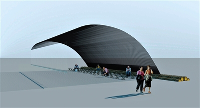 刘家琨作品《随风——由你选择2015》(效果图)充满寓意:原木象征着自然和初心,鱼竿是欲望的集合,垂下的线正是悬在头顶的达摩克利斯之剑。