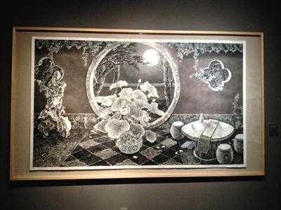 当然,让刘墉满意的并不是自己在画中暗藏“宝贝”,而是他对古诗词的艺术再创作。刘墉说在绘画创作中得到过不少大师的启发。其中便包括齐白石的《蛙声十里出山泉》,“蝌蚪四五,随水摇曳,无蛙而蛙声可想矣”。事实上,《明朝有意抱琴来》也是刘墉苦心创意了一个月,才用艺术创作出李白“两人对酌山花开,一杯一杯复一杯。我醉欲眠卿且去,明朝有意抱琴来”的意境来。“画里没有对酌的人,只见石桌上两壶酒一只杯,一壶还倒了,所幸已经喝尽,才没把摊在案上的手卷弄脏。”