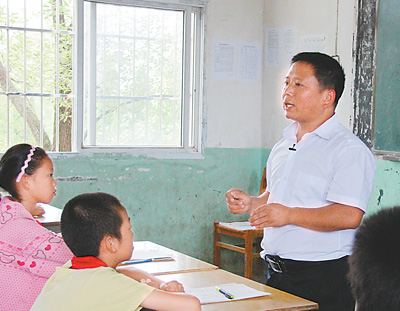 余东岳在向小学生宣讲环保。