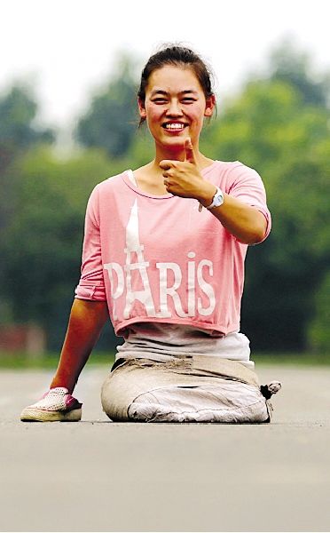 原标题:无腿女孩以手代步求学12年 大学为其免除4年学费