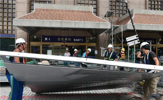 9月29日,施工人员在台北车站广场整理被狂风吹得散落一地的建筑材料。据台湾气象部门报告,“杜鹃”台风中心29日凌晨1时许于彰化县芳苑乡向西进入台湾海峡,目前台湾东半部、大台北地区和南部的高雄、屏东已脱离其暴风圈,尚未有严重的灾情伤亡报告,但此次台风造成台湾各地水电供应、交通运输出现较大问题。新华社记者 韩瑜庆 摄