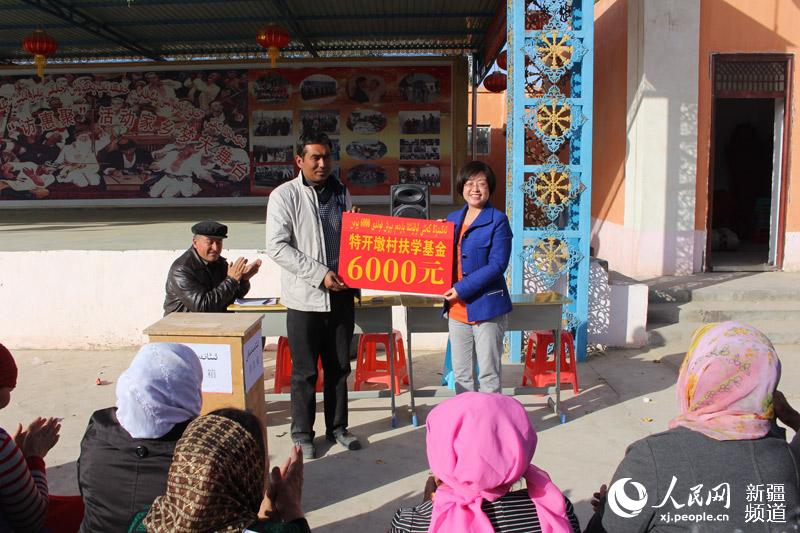 新疆质监局住村工作组向特开墩村扶学基金捐款。