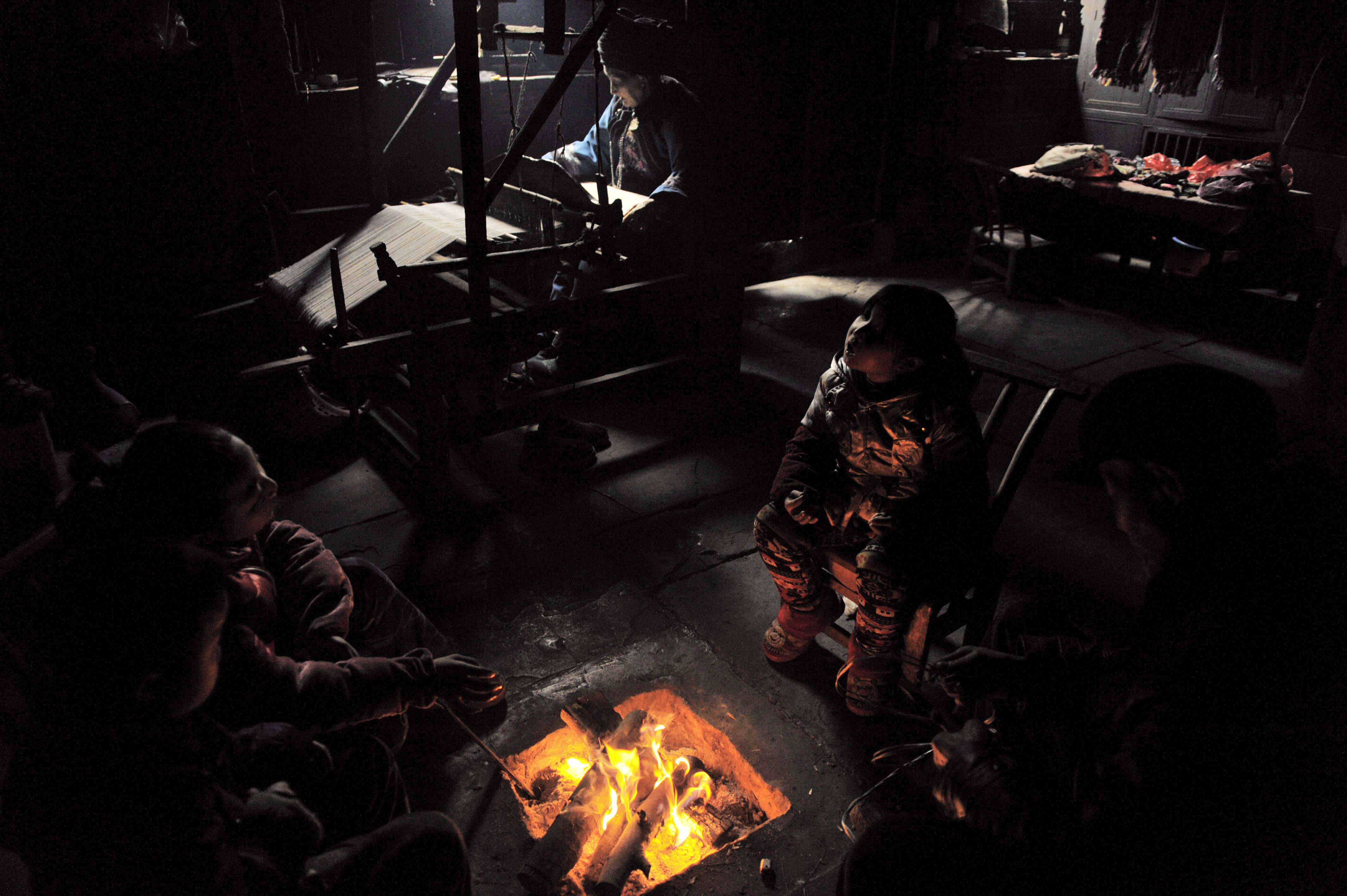2014年1月16日,湖南湘西石洞苗寨。临近春节,留守家中的老人和孩子,围坐在火炉旁,等待着外出打工的亲人们回家。(张卫国)