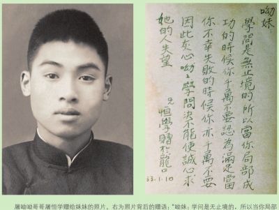 14岁时,屠呦呦哥哥送给妹妹的照片。书中插图