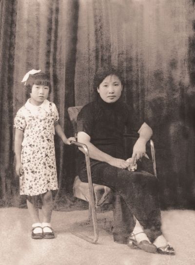 屠呦呦11岁时与妈妈合影。