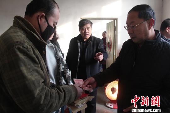 爱心企业把捐款送到王景帅家中。 孟卫力 摄