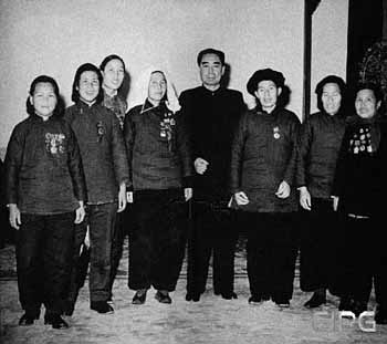 1958年9月,周总理在家中接见并宴请申纪兰(图左三) [来源:人民画报社]