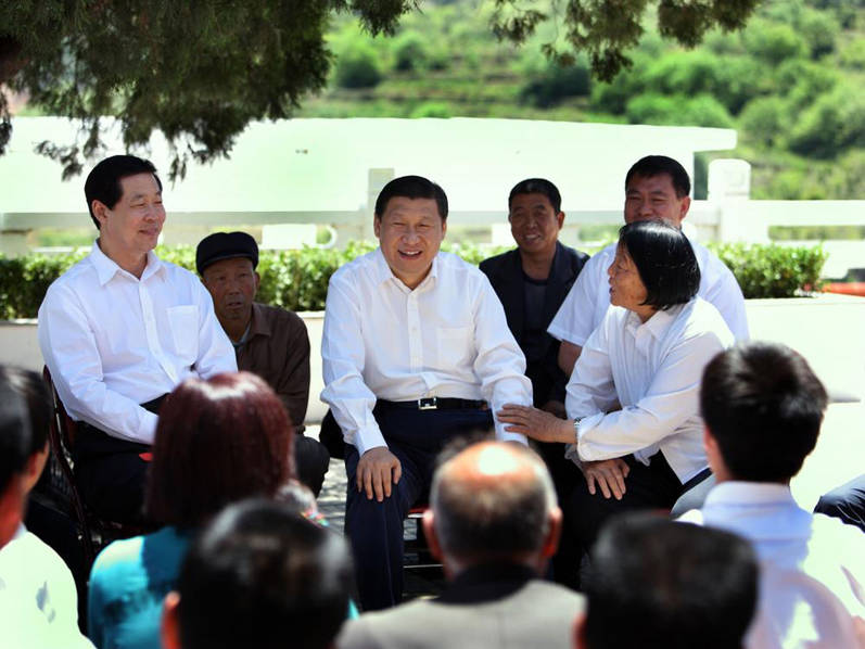 2009年5月25日,习近平在平顺县西沟乡西沟村看望全国劳动模范申纪兰并与老党员、老劳模、大学生村官和村民代表等座谈。