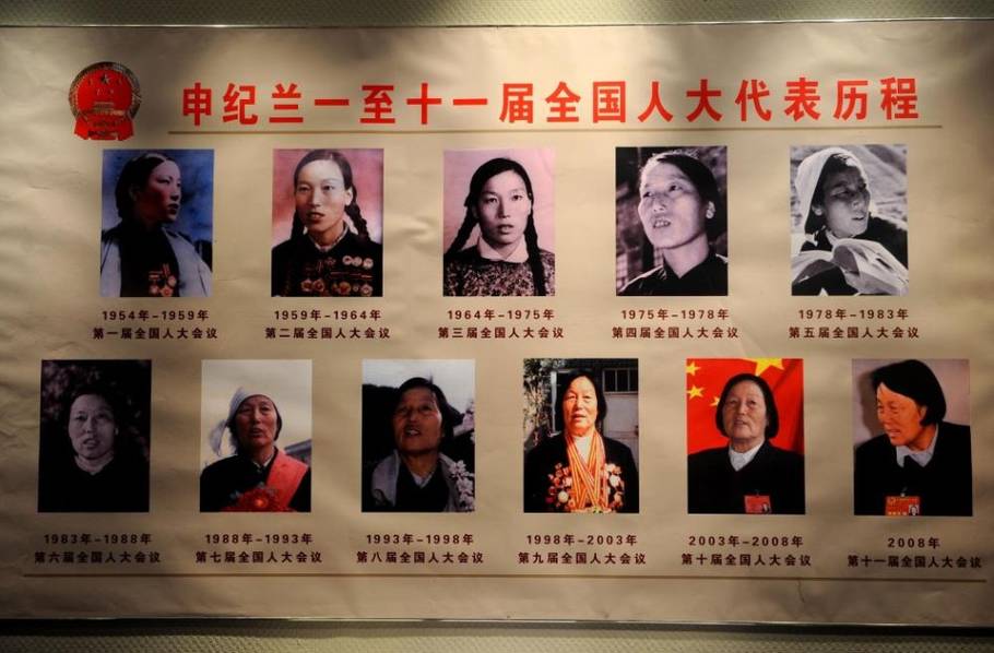 2009年7月20日,山西省西沟教育基地里展出的申纪兰第一至十一届全国人大代表历程。